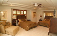 | The master suite is very large with private lanai and beautiful bathroom and sitting area, while the garden bedroom down the hall has two queen beds and private bath. The Zen bedroom has ocean views and shares a bathroom with another bedroom with queen beds. Downstairs the other bedroom has nice wooden floors and is off the kitchen offering lots of privacy for extended families. | ||