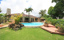 | Welcome to Paradise in beautiful Kailua, Hawaii. This beautifully appointed Hawaiiana home is the perfect retreat for famiy and friends. Just a few steps through the private gate by the pool opens to beautiful Kalama Beach Park. This charming home is decorated with comfortable island décor with lots of room for everyone. For those who want to stay closer to home, a sparkling pool and outdoor tiki bar are great for BBQing and relaxing. |