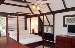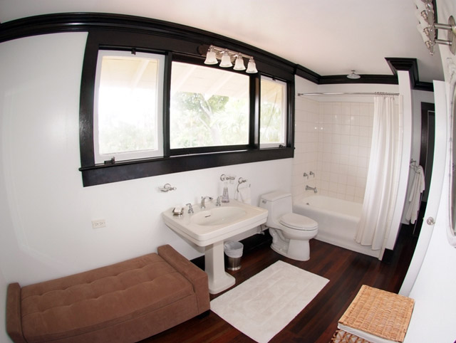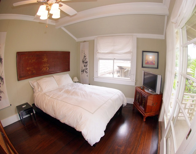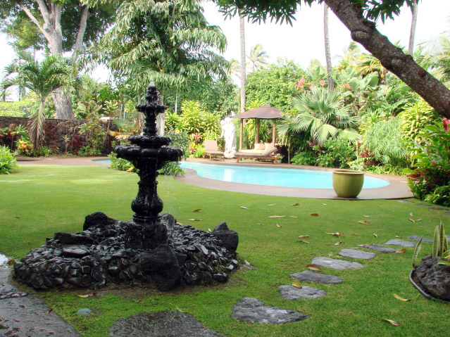 The back yard is an oasis of tropical plants and large covered lanai and outdoor dining areas. Enjoy your dinners on the BBQ after a long day at the beach. The master bedroom and private bath are located on the third level of the house.