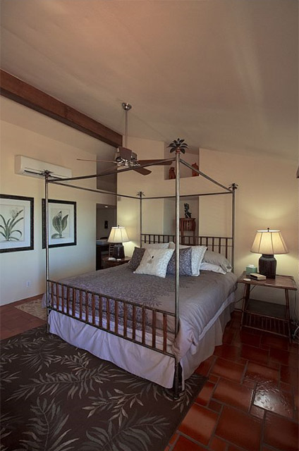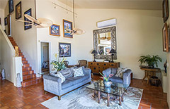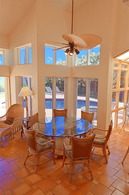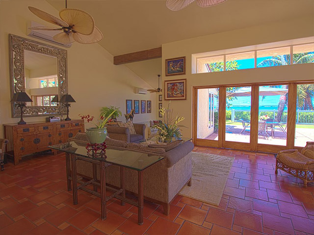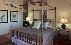 The villa has tile flooring throughout and wonderful contemporary island furnishings. Three of the bedrooms are located downstairs. One is off of the sitting room while the other two are located at the back side of the house. The upper master suite has sweeping ocean views, large bathroom and office area
