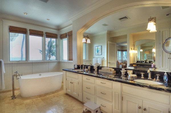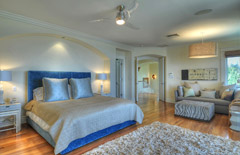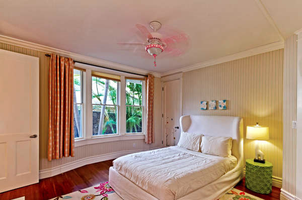 The master suite is located upstairs with wonderful ocean views and private lanai. The other three bedrooms are located downstairs with private baths. The king bed is located on the street side of the house with private stairway and is perfect for couples or extended families.