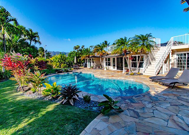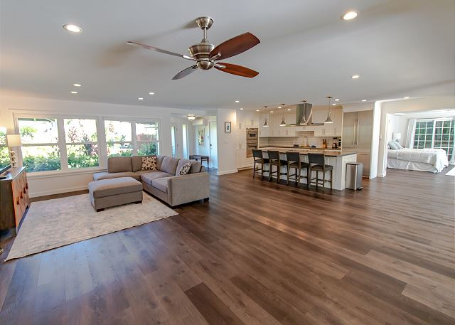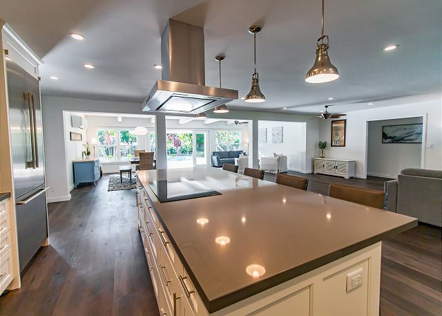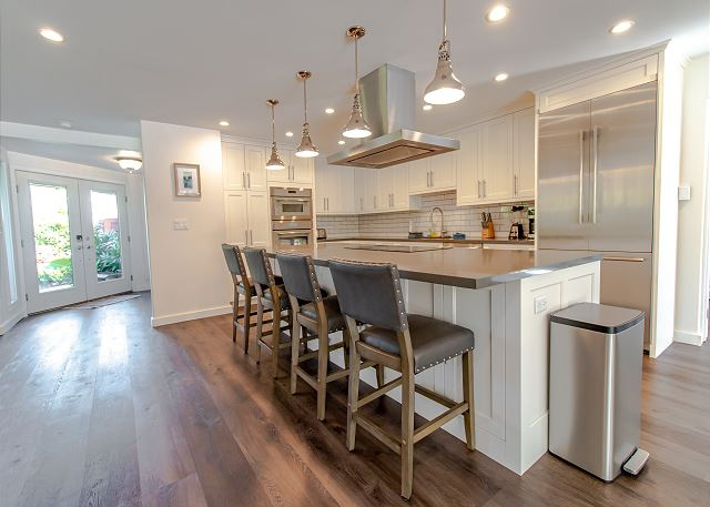 Gated and private—the home offers a contemporary and tropical design with bright airy rooms and lush gardens surrounding a heated salt water swimming pool and cabana. The home features three well appointed bedrooms plus a large mater suite that rings an amazing open living space built for entertaining and socializing. The kitchen is the heart of the home boasting high-end but user-friendly appliances, quartz counter tops, custom cabinets and a large cooking island. The main living space is great for indoor dining, lounging or working remotely using the property’s high speed wi-fi. Sliding doors lead to the beautiful pool area that features a large sun deck, picnic table, barbecue cabana and outdoor garden shower. Just two blocks off the ocean, this charming home is ideal for a group that wants space, privacy and a local island experience.