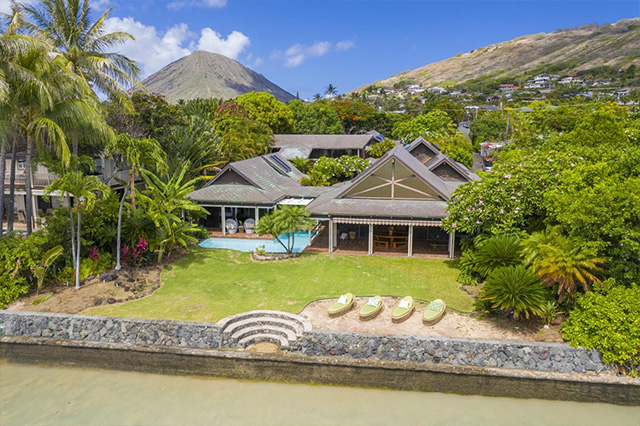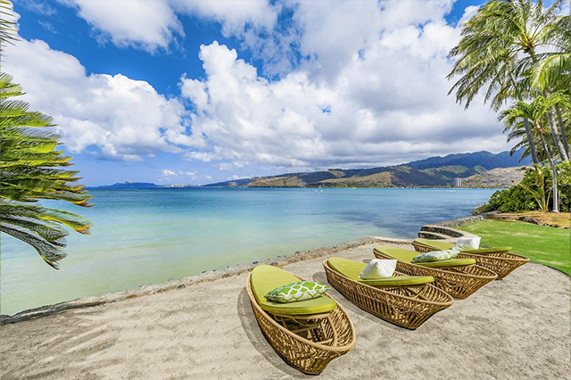 Situated in the famed oceanside neighborhood of Portlock on a rare double-sized ocean lot, this Hawaii Kai vacation rental home provides the ultimate in privacy and accommodations for your large group. Multiple estate structures surround a tropical courtyard and 1,000-square-foot swimming pool. From its prime location on Maunalua Bay, the home allows guests to enjoy calm shores and panoramic views of incredible sunsets, Diamond Head, Koko Head, and Waikiki, including dazzling fireworks every Friday night.