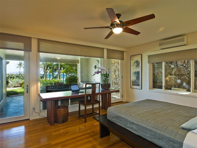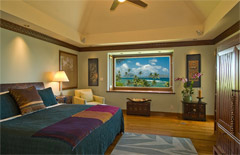 The lower family room has a pool table, large TV and opens onto a garden, pool and a covered lanai. There is a small exercise room with elliptical exercise machine, free weights, exercise ball and bands. Three of the bedrooms are located on the lower floor.