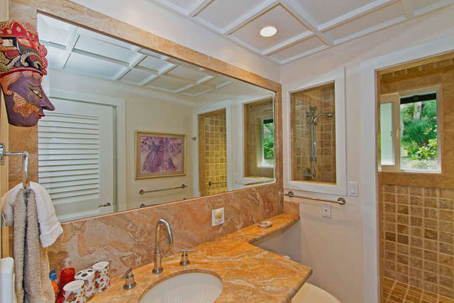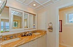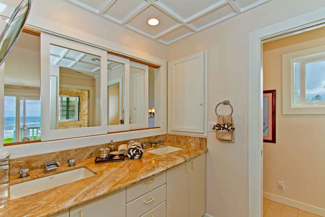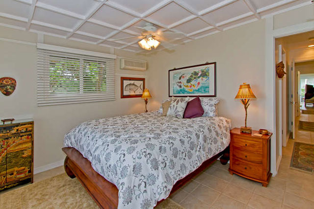 The spacious master suite offers breathtaking views of Kailua beach. While the lower bedrooms offer lots of room for everyone and windows to enjoy the tropical breezes.
